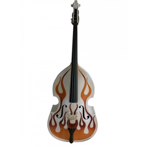 Contrebasse, 3/4 taille , blanche avec flammes sur le plafond, neuve, belle optique, bonne qualité, la touche d ébène, plafond, bois de sapin, fond et cadre bois érable, mais bois de placage, naturellement en ce qui concerne le prix